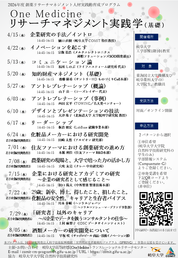 リサーチマネジメント実践学(基礎・応用/知財管理実践)