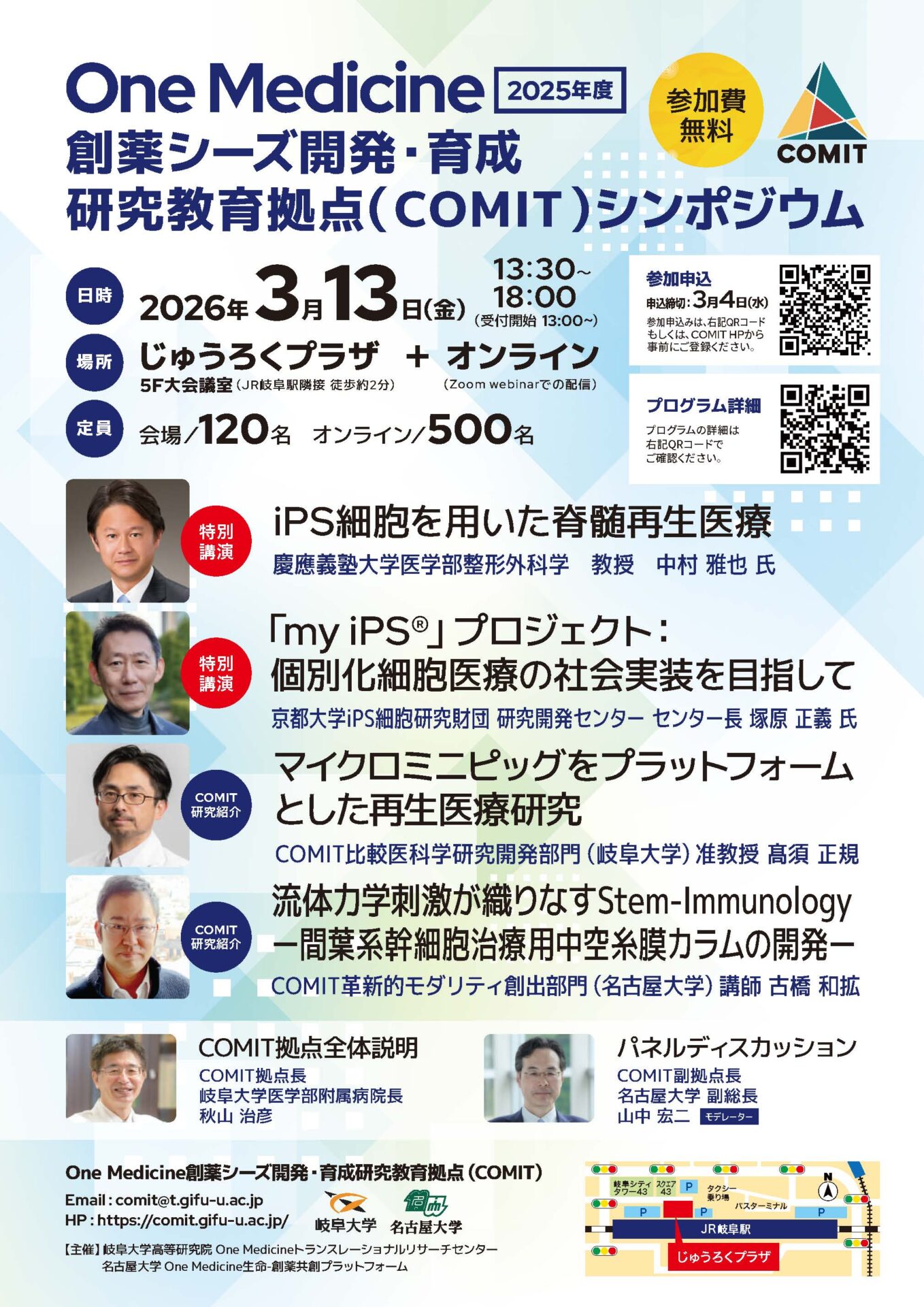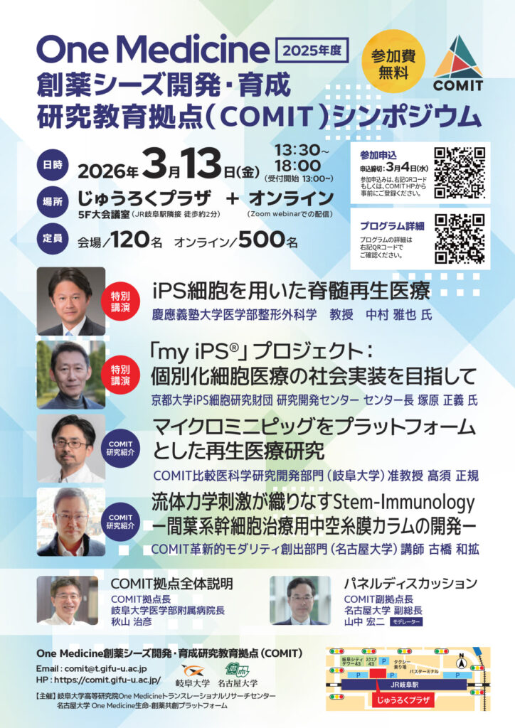 | お問い合わせ | 岐阜大学高等研究院One Medicineトランスレーショナルリサーチセンター E-mail: comit@t.gifu-u.ac.jp |