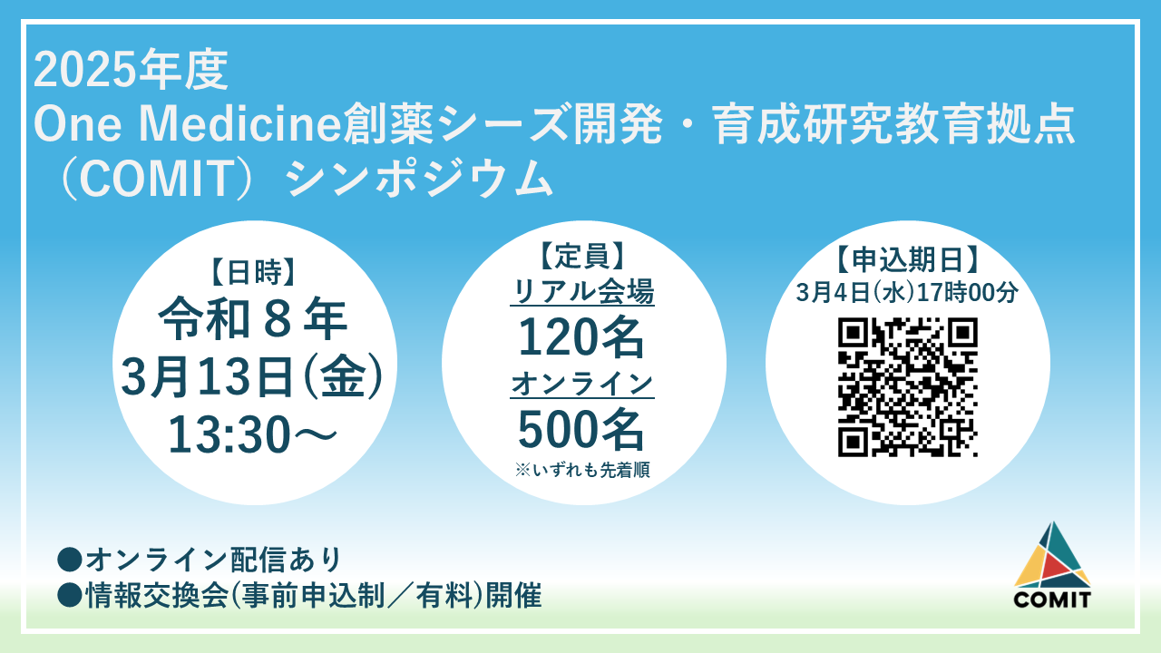 2025年度One Medicine創薬シーズ開発・育成研究教育拠点シンポジウム開催(R8.3.13)のお知らせ